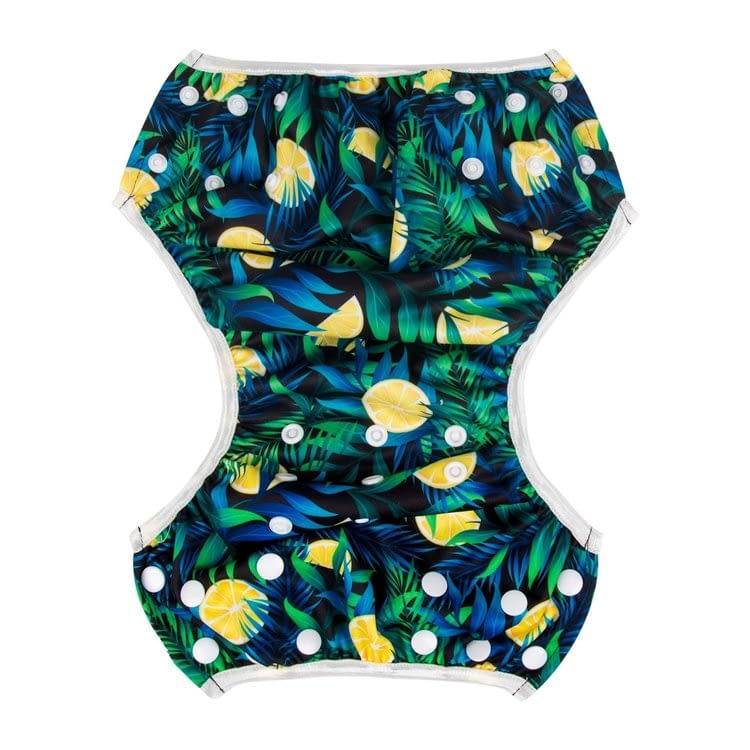 Reusable Modern Swim Nappies. These are an environmentally friendly and cost effective alternative to disposable swim nappies. Made from a breathable inner polyester liner and a Thermoplastic Polyurethane waterproof outer (to hold solids), they boast adjustable snap rows and columns to customise a perfect fit. Elastic bands around the waist and legs help to avoid any leaks even for the most active of babies/toddlers and side snaps make putting on and taking off a nappy an easy and quick process. Coming in various cute designs, these swim nappies are easy to use, reliable and machine washable.